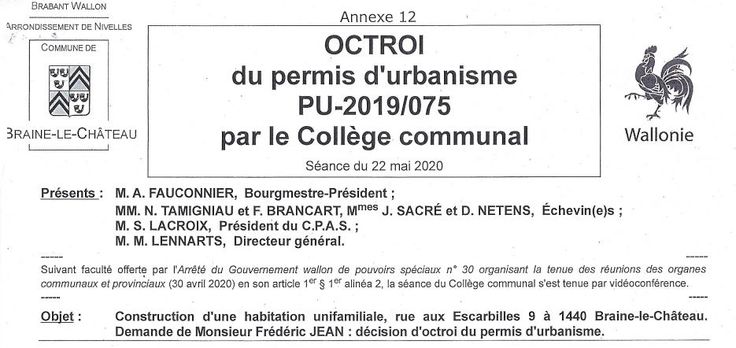 Permis d’urbanisme accordé