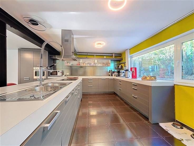 Eigendom met een totale oppervlakte van +/-725m² op 21,30 are grond. Ruime woning van +/-370m², garage van +/-90m², 4 ruimtes omgebouwd tot appartementen die geregulariseerd moeten worden. Veel mogelijkheden voor de afwerking van dit eigendom. Een zeldzame kans! SAMENSTELLING Appartement van +/-370m² + garage van +/-90m²: Begane grond - Ruime ingerichte keuken van +/-50m² - Lichte woonkamer van +/-80m² met gemetselde kachel en prachtig aquarium - WC met wastafel - Wasruimte - Opslagruimte van +/-20m² Garage met technische ruimte van +/-90m² Terras met jacuzzi Mooie, ruime tuin op het noordoosten 1e verdieping: - Grote nachthal van meer dan 50m² - 3 slaapkamers (+/-12, 20 en 22m²) - Grote doucheruimte (bad, douche, wastafel en WC) van +/-23m² met opbergruimte Mooi terras om af te werken 2e verdieping: - Mooie ruimte van +/-50m² + zolders voor opslag PEB nr. 20241024004375 - Espec: 69kWh/m².an - Etotale: 25028 kWh/an - PEB : A Complex omgebouwd tot verschillende appartementen die geregulariseerd moeten worden: Begane grond - Studio van +/-42m² 1e verdieping - 2-slaapkamer duplex appartement van +/-70m² - Appartement met slaapkamer op tussenverdieping, +/-50m² - Studio van +/-40m² (Keukens en badkamers nog te installeren) PEB nr. 20241024004687 - Espec: 193 kWh/m².an - Etotale: 47197 kWh/an - PEB : C Gemeenschappelijke ruimtes: - Gemeenschappeli