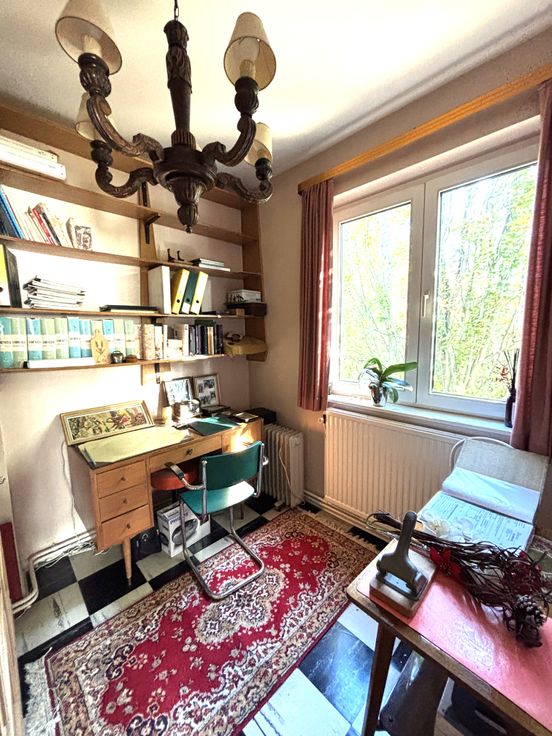 A Auderghem, idéalement située dans un clos à sens unique, bordée d’arbres et à proximité immédiate de toutes les facilités avec une parfaite accessibilité par tous les moyens de transport. Cette charmante maison 3 façades à taille humaine (+/-150 m²) offre tous les attraits d’une grande. Elle se compose actuellement de 2 chambres + 1 bureau + un grenier aménagé en 3ième chambre. Son jardin (+/-208 m²) offre un agréable coin de nature en pleine ville à l’arrière de la maison avec accès latéral au jardinet à l’avant. L’état d’entretien et les nombreux agréments (caves saines sous toutes la maison, volets roulants extérieurs, double vitrage, …) vous raviront. Le PEB G (555 kwh/m²/an – CO² 111 kg CO²/m²/an – 20241018). A découvrir sans tarder.