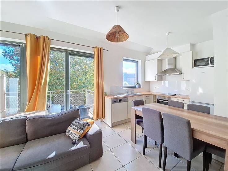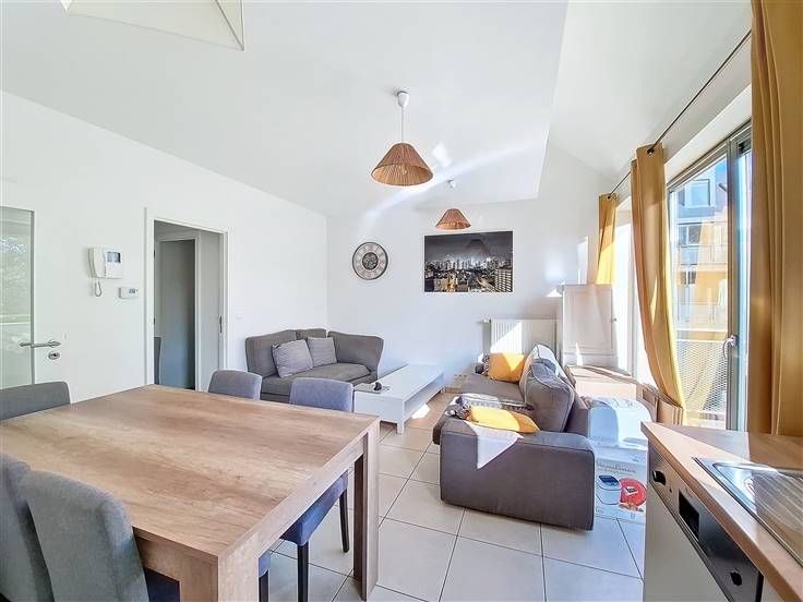 Aantrekkelijk appartement met 2 slaapkamers van ongeveer 61 m², terras, privéparkeerplaats buiten en kelder.