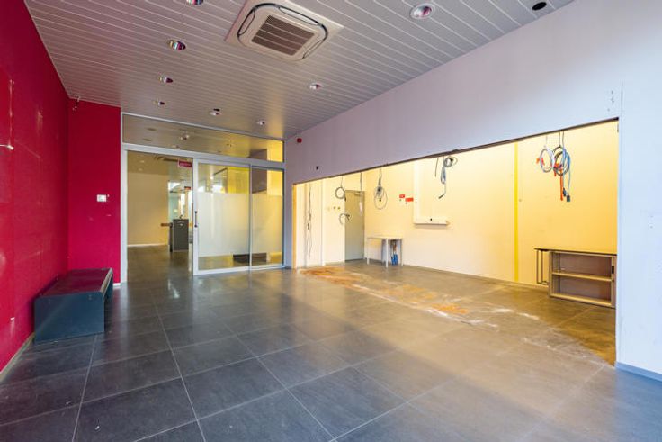 Handelspand te huur gelegen aan de Riemstraat in Antwerpen. Het pand bevindt zich op een boogscheut van de nieuwe Gedempte Zuiderdokken.