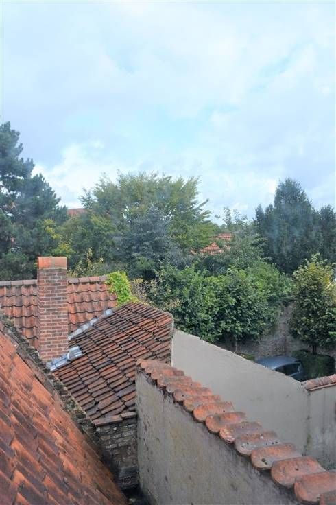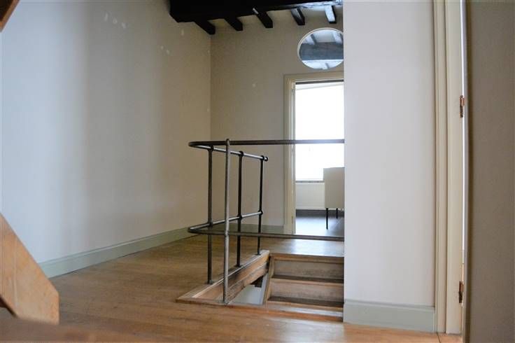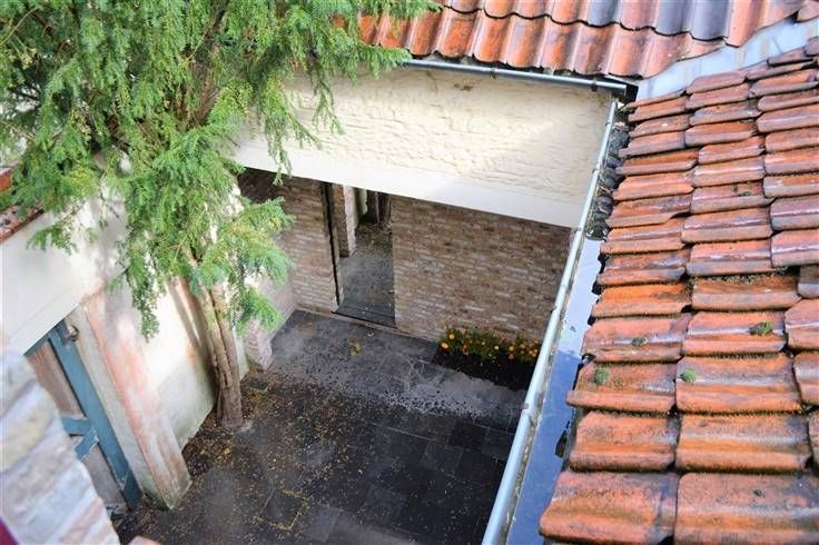 Deze smaakvol ingerichte Brugse herenwoning bestaat uit een inkomhal met gastentoilet - een grote, sfeervolle woonkamer met veel vensters, een vloer in blauwe hardsteen, een gezellige kachel, eikenhouten deuren en plafond - een ingerichte keuken met bijhorende ruime berging en een heel aangenaam, zongericht terras. De keuken geeft uit op een tweede binnenkoer en op een praktische garage. Via een mooie eikenhouten trap, met gietijzeren leuning, bereikt men de twee bovenverdiepingen waar zich vier ruime kamers en een aangename badkamer met inloopdouche, dubbele lavabo en toilet bevinden Charme, mooie materialen, heel veel ruimte en een schitterende ligging maken deze Brugse woning bijzonder.