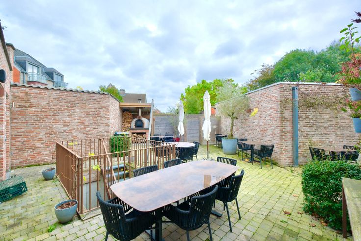 Indeling: Inkomhal, sanitaire ruimte, ruime gelagzaal (voor 25-tal personen) voorzien van alle meubilair, volledig geïnstalleerde bar (o.a. met frigo's, spoelbak en muziekinstallatie) en professioneel ingerichte keuken in inox (alle ingebouwde toestellen van TOPkwaliteit. Buiten is er een aangenaam zonnig terras ( o.a. met pizzaoven, geluidsinstallatie, extra opbergruimte,...), extra tuin (o.a. mogelijk om te gebruiken voor feesten), serre, aparte inrit voor 8 parkeerplaatsen + garagebox (eventueel te gebruiken als opslagruimte). Het pand is volledig onderkelderd (2 opbergruimtes + koelcel aanwezig). De kelder zou tevens kunnen ingedeeld worden als woonst/studio. Tot slot is er een afzonderlijke ingang voor leveranciers of voor de woonst/studio.