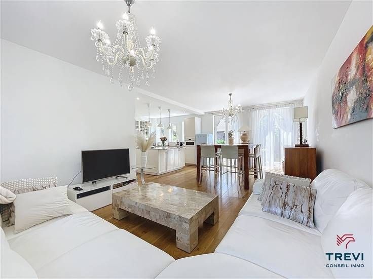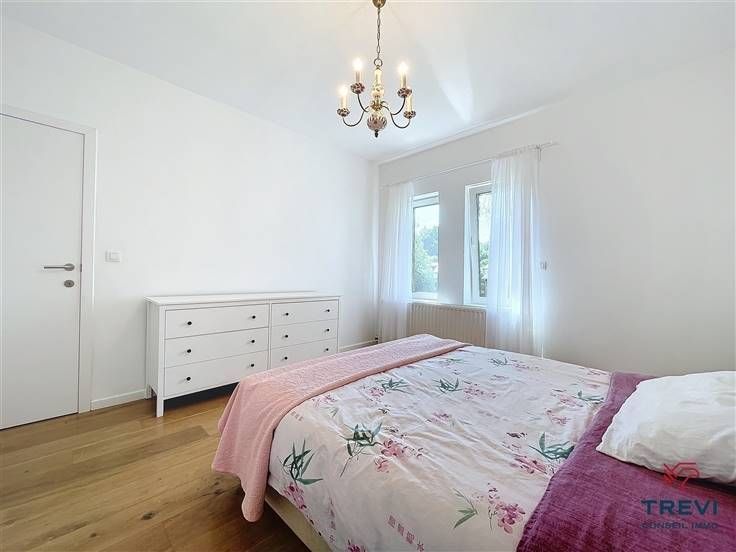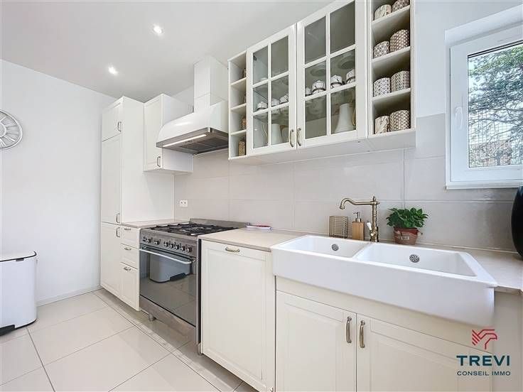 Sorry er is geen nederlandse vertaling beschikbaar. Dans une jolie rue résidentielle très accessible, belle villa unifamiliale totalement rénovée offrant de beaux espaces clairs, un splendide jardin et un logement supplémentaire indépendant. La villa propose un hall d'entrée joliment carrelé avec toilette invités vers le beau séjour de 30 m² et sa très jolie cuisine toute équipée ouverte et son plan de travail en pierre naturelle. Accès vers la terrasse à l'avant de la maison. A l'étage, via bel hall de nuit sous parquet, jolie chambre de 16 m² proposant un beau meuble dressing sur mesure et deux autres chambres de 12 et 10 m² sous parquet. Placards sur mesure. Belle salle de douche avec douche à l'italienne, meuble évier, toilette et radiateur porte serviettes. Caves sous toute la alison dont chaufferie et buanderie. A létage supérieur, belle chambre sous velux et plancher stratifié de 30 m2 avec beau dressing. Belle allée récemment bétonnée vers le garage transformé en petit appartement 1 chambre très cosy vers le jardin. Cabane de jardin. Double vitrage pvc et volets. PEB E. CC au gaz. Citerne d'eau de pluie. Alarme. Faire offre à partir 540.000€. Infos et visites au 02/355.50.55.
