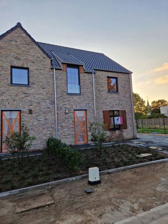 LAATSTE WONING TE KOOP: WONING 18! In het centrum van Opitter worden 2 BEN-woningen gebouwd. De tuinen worden afgewerkt met omheining, en het terras en de oprit worden ook voorzien. Je woont er in een fijne en rustige buurt. Woning 18 is de rechtse woning.  De bewoonbare oppervlaktes bedragen maar liefst 175 m² en de woningen hebben een ruim terras en perceeloppervlaktes van 3a75ca en 3a84ca. De woningen beschikken over 3 slaapkamers. Pluspunt; de ruime zolder biedt mogelijkheid om extra kamers bij te creëren. De zuid-west georiënteerde tuin wordt volledig omheind en aangelegd inclusief verhardingen van de inrit en de wandelpaden. Het voortuintje wordt voorzien van siergrassen en een sierboompje. Ook een brievenbus en huisnummer worden geplaatst. Privacy in de achtertuin gegarandeerd door de aanleg van hagen én door de gemetselde tuinmuur tussen de woningen. *Gelijkvloers: een inkomhal met apart toilet en vestiaire, een ruime leef- en eetruimte, een leefkeuken met aangrenzende berging/wasplaats. Zeer veel lichtinval dankzij de grote raampartijen aan de achterkant van de woning. Hier werd een keramische vloertegel voorzien. De keuken kan nog volledig zelf gekozen worden. *Verdieping: 2 ruime slaapkamers en een masterslaapkamer met ruimte voor een dressing, een badkamer en een apart toilet. Buiten het bad en de douche kunnen de sanitaire toestellen nog gekozen worden. De slaapkamers krijgen laminaatparket. *Zolder: bereikbaar via een betonnen trap en kan indien gewenst vo
