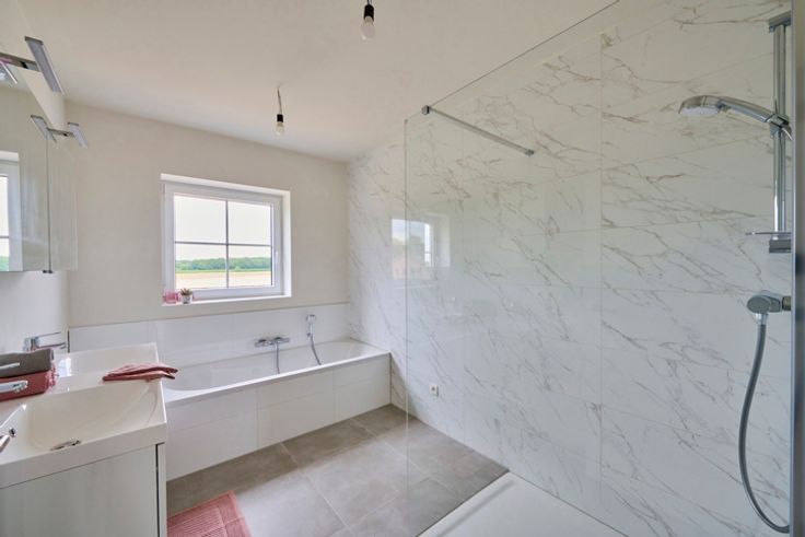 BEN nieuwbouwwoningen gelegen te Oudsbergen (Gruitrode) aan de Kasteelstraat met uitzicht op achterliggende weilanden. De bewoonbare opp. bedragen maar liefst 163,5 m² met een perceelopp. van 4a60ca. Extra troef: de zolderverdieping van 56,5 m². Woning 7 werd intussen volledig afgewerkt en is instapklaar inclusief grondlaag verf! Snel verhuizen is mogelijk. Inkomhal met apart toilet, trap naar het verdiep en toegang tot de leefruimte, lichtrijke living met open keuken. Langs de keuken is er een aparte berging. Op het 1ste verdiep zijn er 3 slaapkamers, een multifunctionele ruimte (mogelijkheid tot bureel, dressing, speelkamer, zitruimte,…), badkamer met bad+douche en dubbele lavabo, apart toilet, berging en vaste trap naar de zolder. Volledig in te richten zolder van maar liefst 56,5 m² met een raam die kan dienen als bureauruimte, 4de slaapkamer met sanitair, extra bergruimte of een combinatie. De aansluitingen zijn reeds aanwezig. Oostgerichte tuin met zicht op achterliggend groen maakt het aangenaam vertoeven. Een andere grote troef is het gunstige EPB met een maximum E-peil van een stuk onder 20! D.w.z. dat er de eerste 5 jaren geen KI dient betaald te worden. Dit peil wordt gehaald door de technieken van de warmtepomp, de vloerverwarming zowel op het gelijkvloers als op het verdiep (mogelijkheid passief koelen), het ventilatiesysteem type D, de zonnepanelen van minimum 3700 Wp,... Een carport is volgens de stedenbouwkundige voorschriften mogelijk. De tuin werd volled