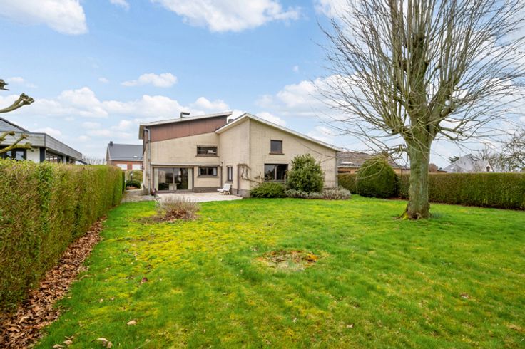 Het gelijkvloers omvat: een riante inkomhal met toegang tot het toilet. Verder hebben we een lichtrijke zithoek en eetplaats met uitzicht op de tuin, een keuken en de berging. Via de nachthal bereiken we de drie slaapkamers en de op te frissen badkamer. Verder hebben we de inpandige garage met een sectionale poort en een extra bergruimte te betreden via het terras.