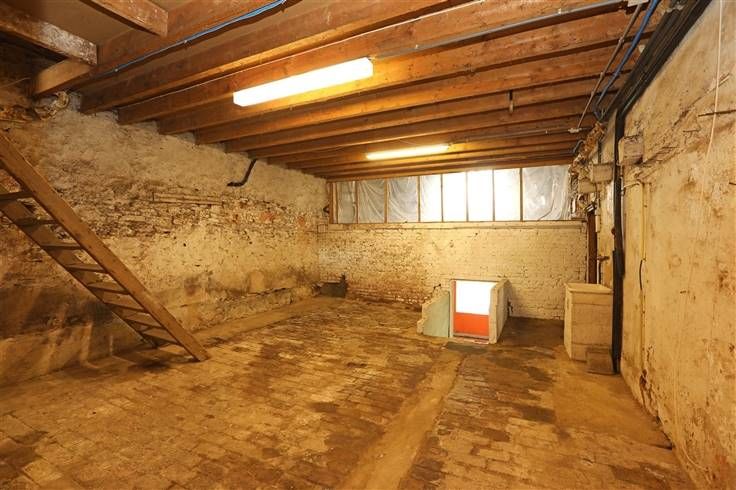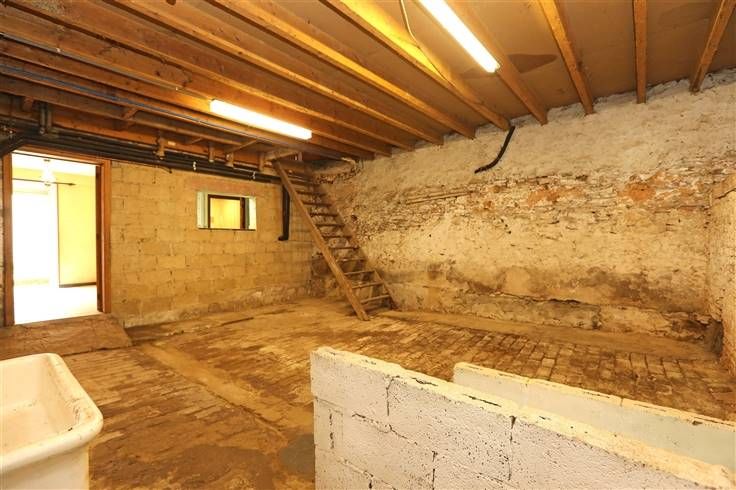 Gelijkvloers heeft salon 20 m², eetkamer 20 m², ingerichte keuken 17 m², grote ruimte 43 m² (voormalig café), hal 7.50 m², stookruimte/wasruimte 10 m² met aparte wc en werkplaats (voormalige stal) 28 m².