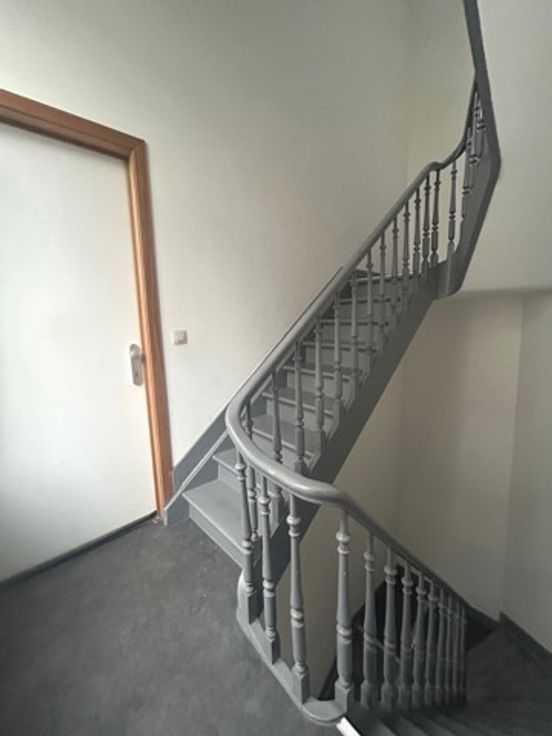 Au n°12 : Un duplex de +/- 53 m² composé d'une pièce avec cuisine équipée, espace de rangement + à l'étage une chambre avec espace de rangement et salle de douche avec toilette. Un studio de +/- 27 m² avec cuisine et salle de douche avec WC + espace de rangement sur palier de +/- 2 m².