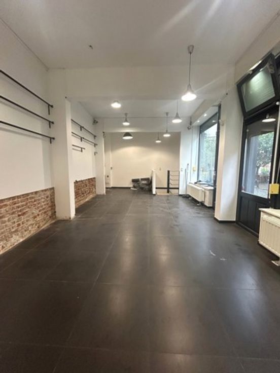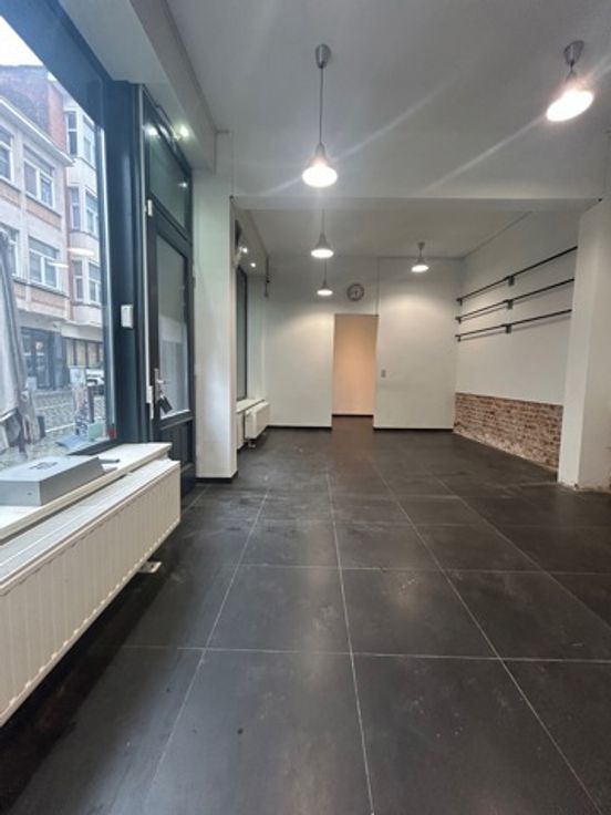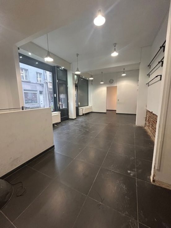 L 'immeuble se compose au n°8/10 : d'un rez-de-chaussée commercial de +/- 51 m², grandes vitrines avec volets + lieu de stockage au sous-sol de +/- 35 m² avec toilette séparée. (commerce sauf Horeca, coiffure, esthétique, magasin de tissus).