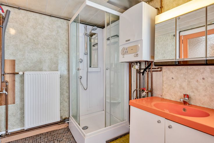 Ook op het gelijkvloers kan u de badkamer en het toilet terugvinden.