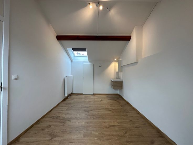 Een elegante trap in de woonkamer leidt naar de tweede slaapkamer, die is voorzien van ingebouwde kasten en een eigen wastafel. Hier kunt u genieten van een v...