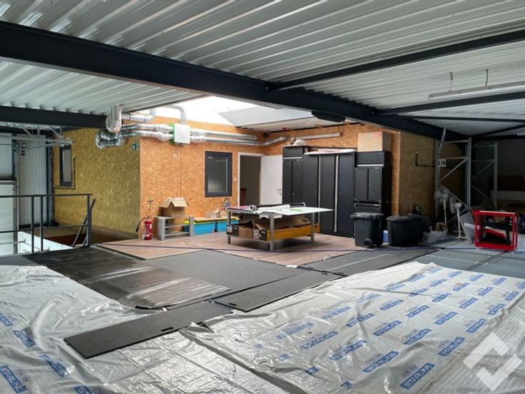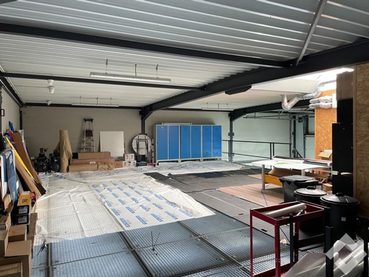 Zeer praktische KMO-unit te huur op bedrijvensite de Campus te Pelt. De bedrijvensite is gelegen aan de oprit van de Noord-Zuidverbinding N74 en Ringlaan N71. Door deze ligging aan de ingang van het NOLIM-park is een vlotte bereikbaarheid is hier dus gegarandeerd! Er is een bruikbare grondoppervlakte van 220m2 met alle voorzieningen zoals betonvloer, stroompunten 220V/380V, automatische sectionaalpoort en toilet. Vooraan werd er een ontvangstruimte gecreëerd om hiermee de werkruimte af te scheiden. Bijkomend werd er een verdiepingsvloer over bijna de gehele oppervlakte van de hal geplaatst wat heel wat extra opslagruimte geeft. Hierbij werd ook een studio met leefruimte, open keuken, badkamer en slaapkamer geïnstalleerd, ideaal om bij de zaak te verblijven! opgelet, geen domicilie mogelijk. Voor de hal zijn drie privatieve parkeerplaatsen voorzien. huurprijs excl. BTW, gemeenschappelijke kost van €75,- per maand. KI ten laste van de huurder. INDELING: parking, onthaal, werkruimte, verdiepingsvloer, studio. BIJZONDERHEDEN: - Drie privatieve parkeerplaatsen. - Zeer goede ligging. - Alle voorzieningen aanwezig. - Studio zonder domicilie