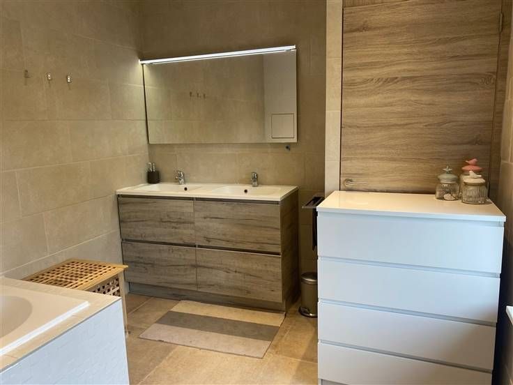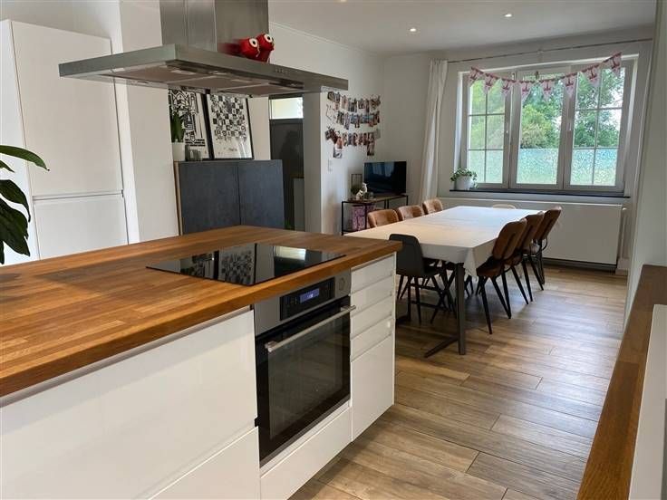 Volledig gerenoveerde, gezellige eengezinswoning in landelijke omgeving - Geen renovatieplicht (EPC-label B) - Elektriciteit conform AREI - Asbestveilig Deze woning treffen we aan in Vechmaal, een landelijke deelgemeente van Heers. U geniet er van de rust van het landelijk karakter, maar ook van de goede bereikbaarheid van de nodige voorzieningen en de uitstekende verbindingen. Zo bereikt U de E40 binnen enkele minuten. Op vlak van indeling onderscheiden we het volgende: Gelijkvloers: inkomhal met trap naar de verdieping, living, bureau, achterhal met toilet en washok, ruime open leefkeuken met wand- en eilandopstelling en eetkamer. Eerste verdieping: nachthal, 3 slaapkamers van respectievelijk 16, 12 en 11 m², badkamer met ligbad, dubbele lavabo en douche, apart toilet en berging. Daarnaast beschikt de woning nog over een kleine kelderruimte en een zolder van 42 m² met vaste trap. Achteraan de woning ligt een aangenaam tuingedeelte met terras en tuinberging. Links van de woning treffen we een buitenstaanplaats, die kan worden omgevormd tot carport. Op vlak van technieken onderscheiden we het volgende: De woning werd reeds volledig gerenoveerd. - Dak en muren reeds geïsoleerd - Hoogrendementsbeglazing in pvc-omkadering - Verwarming op gas met hoogrendementsketel - Elektriciteit conform het AREI - Asbestveilige woning Wenst U meer informatie over deze woning of een be