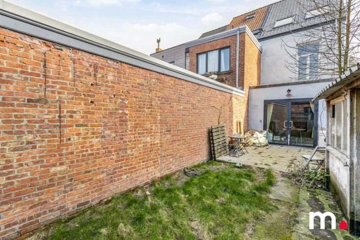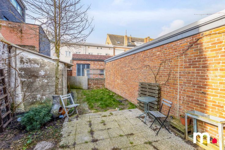 Gelijkvloers: inkom-keuken en living- badkamer met WC- binnentuin met uitgang achteraan.