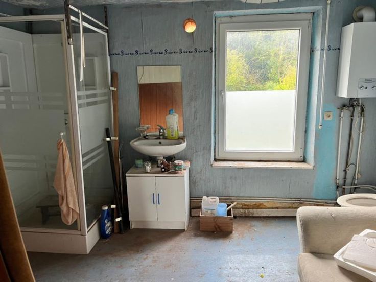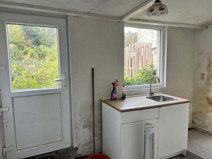 Maison mitoyenne à rénover située proche du centre composée d'un séjour de 24 m2, d'une cuisine non équipée de 8 m2, au premier: on a une chambre de 15 m2 et une salle de douche avec évier et WC; Il y a un grenier aménageable, une cave et un jardin.