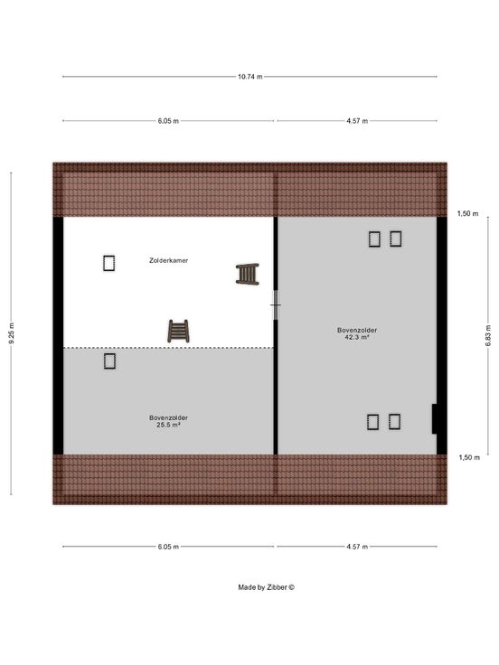 Er zijn verschillende zolderruimtes die tal van mogelijkheden bieden om de woning verder uit te breiden tot afzonderlijke kamers. Deze zolderruimte/kamers kan u verbinden met de huidige nachthal.