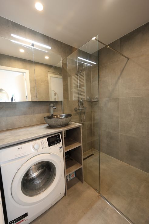 •De praktische badkamer is uitgerust met een inloopdouche, wat zorgt voor een luxe en comfortabele ervaring.