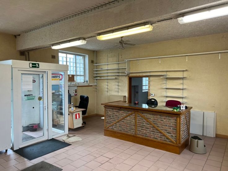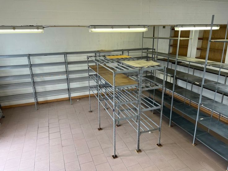 Industriële stockagerekken zijn aanwezig / beschikbaar, toilet, verwarming op gas in de 2 zone's.