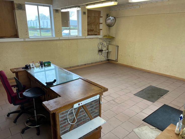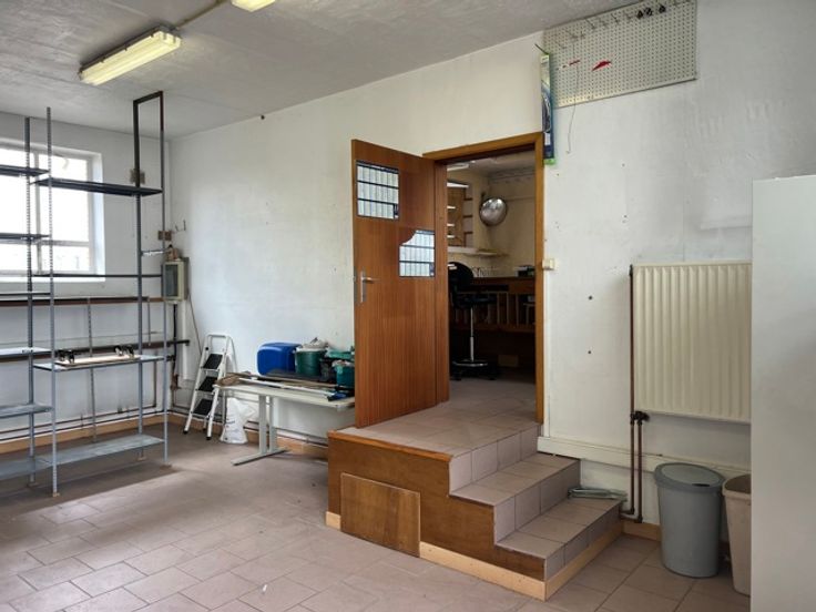 Zone 1: +/- 50m2 - tegelvloer, verlichting, inkomdeur, doorgang naar Zone 2: +/- 50 m2 - tegelvloer, verlichting, inkomdeur.