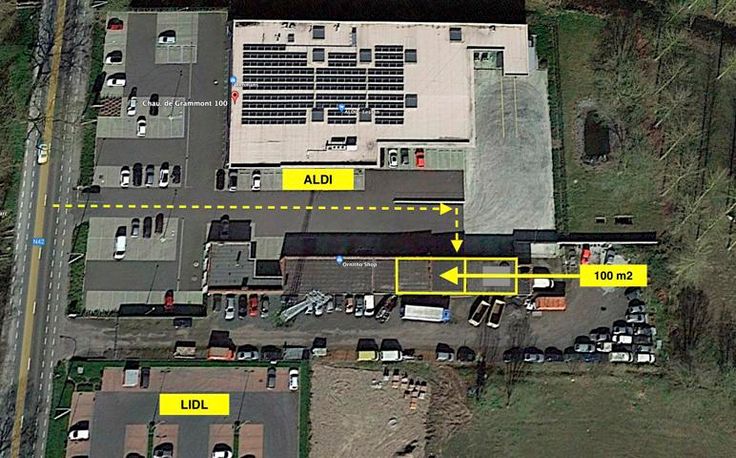Opslagplaats / Winkel te huur, gelegen op de parking van Aldi te Lessen. (op 5' rijden van Geraardsbergen)
