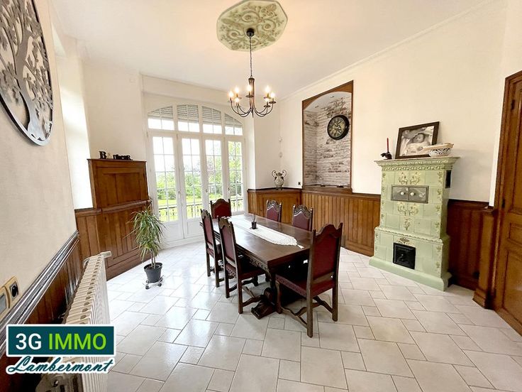 3G Immo Lambermont vous présente à Piennes à 30 minutes d'Esch-Belval (bus toutes les heures vers le Luxembourg de 5h à 23h), une splendide maison de Maître entièrement rénovée avec ses plafonds à 3,40m, ses parquets chêne et moulures et son superbe escalier central en chêne... Cette propriété dispose d'une surface habitable d'environ 432m² avec 6 chambres ou plus (+ plus 130m² de sous-sol et 1 garage), le tout implanté dans un parc d'un hectare (terrain constructible). La demeure, totalement rénovée, érigée dans les années 20 se compose au rez-de-chaussée d'un spacieux hall d'entrée, d'un magnifique salon (44m² avec sa cheminée Jomont), d'une cuisine équipée, de deux salles à manger (19,7m² et 28,7m²) et d'un Wc. Au second étage (sur dalle) se trouvent 2 chambres (19 et 20m²) et 2 dressings (7,6 et 13,9m²), une salle de bain (baignoire balnéo 2 places), une salle d'eau et d'un Wc séparé. A noter que la chambre principale donne accès à une terrasse de 32m² du plus effet. Au dernier niveau, toujours sur dalle, nous retrouvons 4 chambres (12 / 14,4 / 20 et 29m²), une salle de bain et un Wc séparé. Le sous-sol, complètement carrelé et isolé comprend une cuisine d'été, une salle de sport, un débarras, une chaufferie et une buanderie. Parc d'un hectare plat, entièrement clôturé sans vis-à-vis avec de belles parties pelouse et arborées. Au niveau technique tout a été rénové entre 2000 et 2010 avec des matériaux et artisans de qualité (tout à l'égout, plomberie, électricité, SDB,