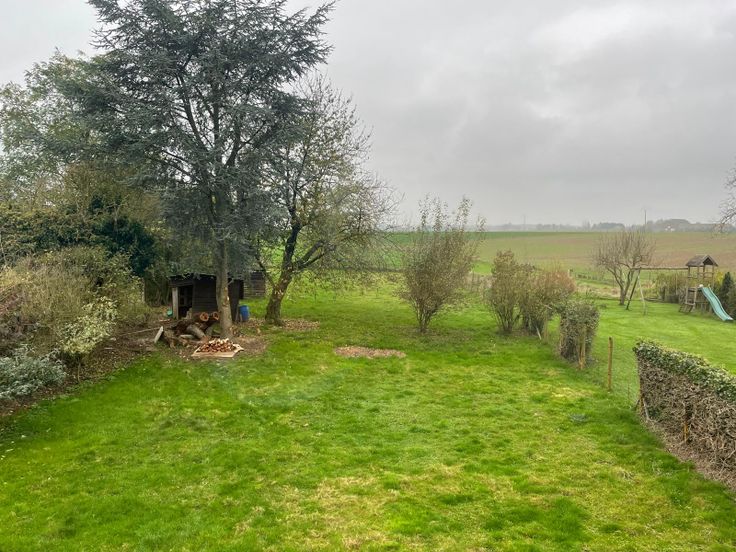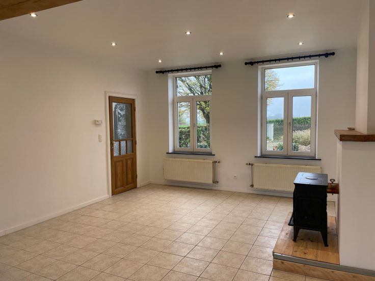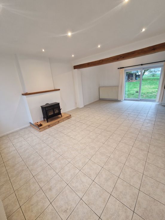 La pièce de vie s’ouvre sur le jardin et la vue sur les campagnes, sans vis-à-vis.