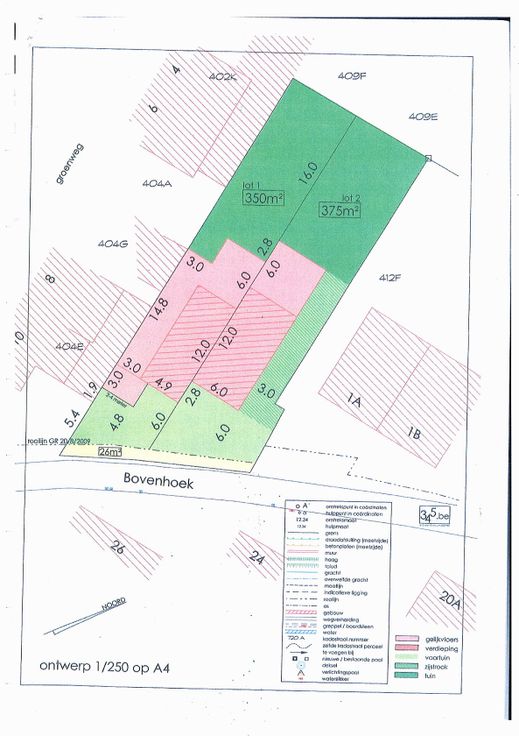 Het eigendom is het lot 1 van de goedgekeurde verkaveling dd. 22.02.2018 met als bestemming : oprichten gesloten bebouwing (na afbraak oude woning)(zie verkavelingsplan).