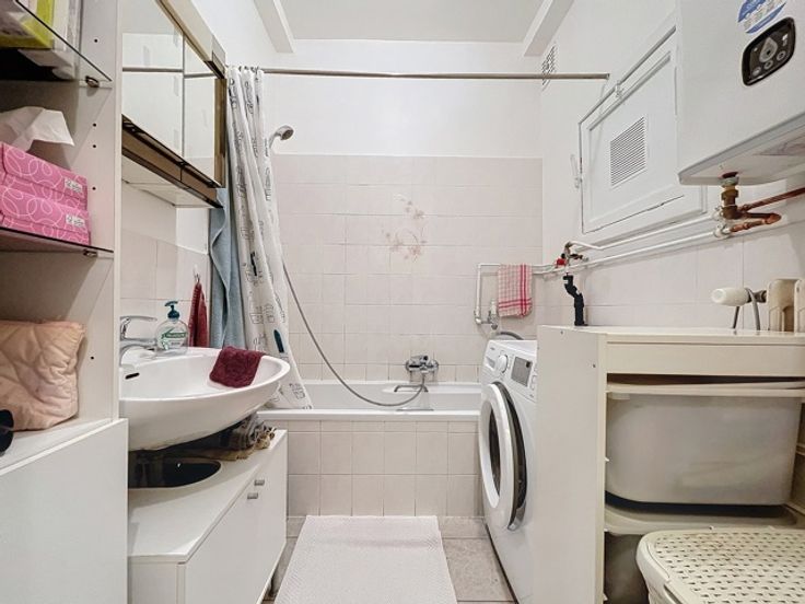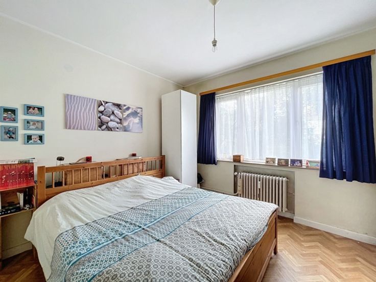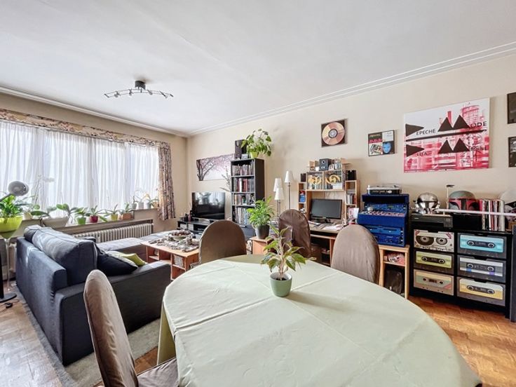 Oudergem - Ideaal gelegen in de wijk Herman Debroux, met directe toegang tot de E411 en de metrolijnen 1 en 5, een op te frissen appartement met 2 slaapkamers. Het ruime appartement van 97m² biedt een lichte woonkamer (zuidwestoriëntatie) van ±27m² met een decoratieve open haard, een aparte keuken van ±8m² met toegang tot het balkon, twee aangenaam ruime slaapkamers (±13 en ±14m²), een douchekamer met aansluiting voor wasmachine, een berging en een apart toilet. Op de begane grond een grote garagebox met een privéparkeerplaats direct ervoor (+30.000 EUR verplicht). Een kelder voor extra opslagruimte. Met enkele opfrissingen kan dit appartement een echt juweeltje worden of dankzij de ligging een ideale investering! Een identiek appartement met kelder en garage op de eerste verdieping van dit gebouw is ook te koop.