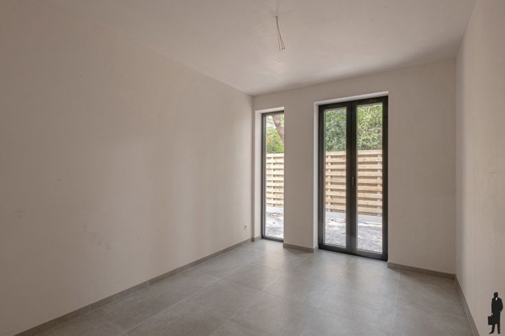 Huurprijs: €1.350 EUR / maand + €150 EUR / maand gemeenschappelijke lasten Beschikbaarheid: onmiddellijk beschikbaar. Indeling: Instapklaar, gelijkvloers nieuwbouwappartement van ca. 110m² met onder meer 2 ruime slaapkamers, afzonderlijke (gasten)toilet in de inkomhal, een badkamer voorzien van inloopdouche en badkamermeubel met dubbele wastafel, een leefruimte met open keuken en een afzonderlijke ruime berging. Het appartement is kwaliteitsvol afgewerkt en met oog voor detail. De woonkamer geniet van veel lichtinval door de grote raampartijen. De leefkeuken is voorzien van alle nodige toestellen: afwasmachine, koelkast, inductiekookplaat met afzuigkap en voldoende inbouwkasten. Het gelijkvloerse appartement geniet van een rustige tuin (met 2 terrassen op west- en noordoriëntatie) die rechtstreeks bereikbaar is vanuit de woonkamer. Er is een autostaanplaats (carport) inbegrepen in de huurprijs. Bijzonderheden: - Onmiddellijk beschikbaar - Tuin met 2 terrassen (1 met oriëntatie op westen; 1 met oriëntatie op noorden) - Op fietsafstand van het centrum van Weelde - Omgeven door de landelijke natuur en op enkele minuten van het Gewestbos te Ravels - Carport inbegrepen in de huurprijs