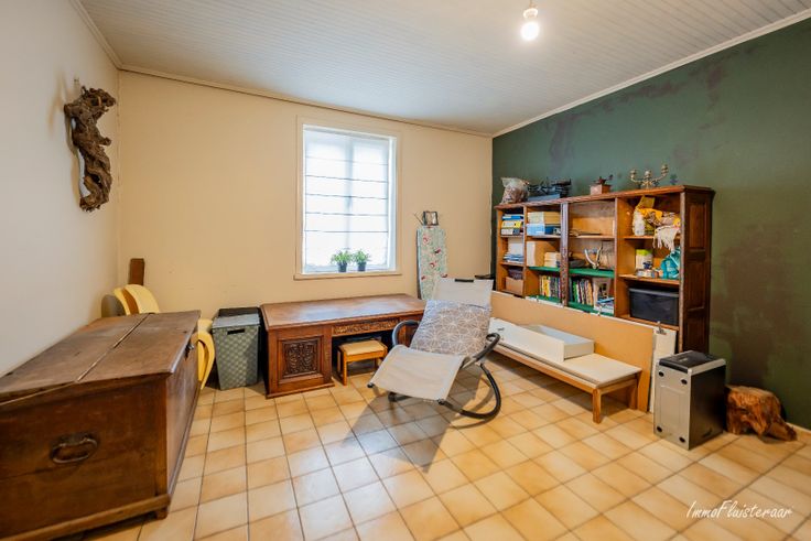 Verder nemen we u mee naar de te renoveren, charmante woning met authentieke elementen. Ze omvat een inkomhal, gezellige woonkamer met zit- en eethoek, geïnstalleerde keuken, bureau en slaapkamer. Vervolgens bevindt zich op de eerste verdieping nog een extra grote slaapkamer. Een ander gedeelte van de woning wordt op heden niet gebruikt, ma