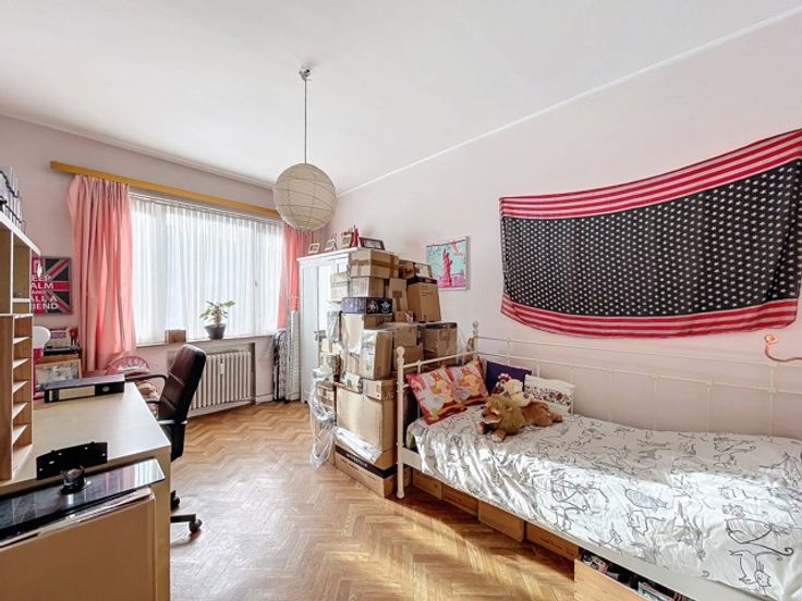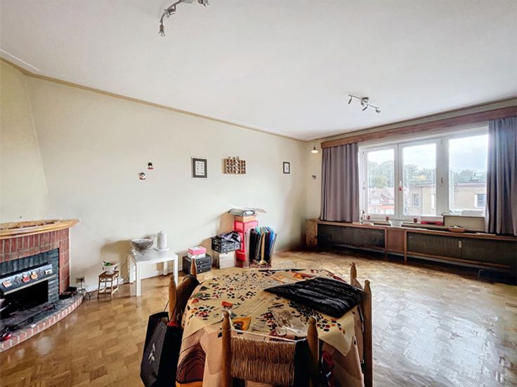 Oudergem - Ideaal gelegen in de wijk Herman Debroux, met directe toegang tot de E411 en de metrolijnen 1 en 5, een op te frissen appartement met 2 slaapkamers. Het ruime appartement van 97m² biedt een lichte woonkamer (zuidwestoriëntatie) van ±27m² met een decoratieve open haard, een aparte keuken van ±8m² met toegang tot het balkon, twee aangenaam ruime slaapkamers (±13 en ±14m²), een douchekamer met aansluiting voor wasmachine, een berging en een apart toilet. Op de begane grond een grote garagebox met een privéparkeerplaats direct ervoor (+30.000 EUR verplicht). Een kelder voor extra opslagruimte. Met enkele opfrissingen kan dit appartement een echt juweeltje worden of dankzij de ligging een ideale investering! Een identiek appartement met kelder en garage op de eerste verdieping van dit gebouw is ook te koop.