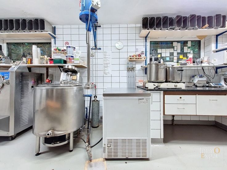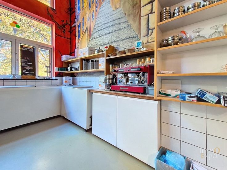 At 1030 Schaerbeek, Avenue des Azalées, a ground-floor commercial space for horeca (currently an ice cream shop) composed as follows: