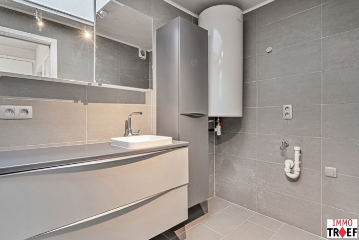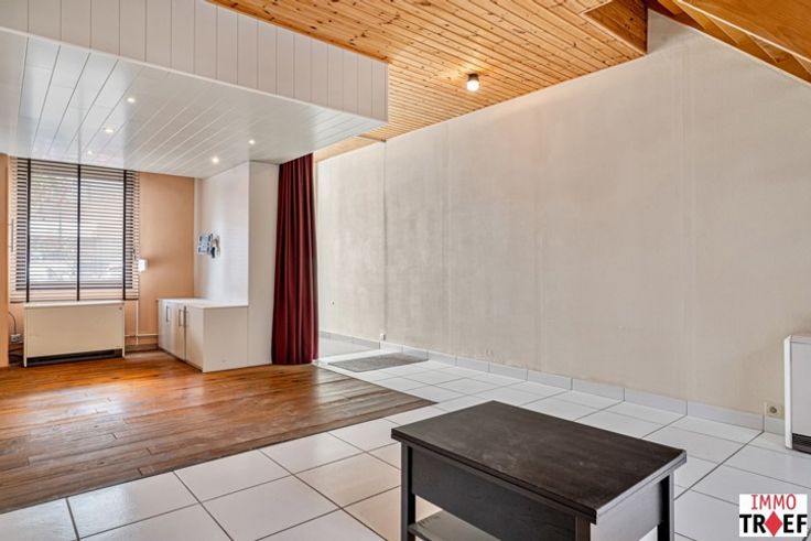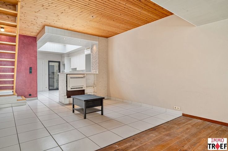 Deze gezellige woning is gelegen in hartje Lebbeke, op letterlijk enkele stappen van winkels, scholen en openbaar vervoer. Indeling: een inkom met vestiaire, een gezellige zit- en leefruimte met aansluitend een geïnstalleerde keuken, een praktische opbergruimte, een apart toilet, een badkamer met wastafel, douche en aansluiting voor wasmachine. Vervolgens is er toegang tot een koer/terras. De woning beschikt tevens over een recht van doorgang, waardoor je gemakkelijk de fiets kan stallen en de vuilnisbakken buiten kan zetten. Op de eerste verdieping zijn er momenteel 2 kamers, 1 kleine en 1 hele grote die kan ingedeeld worden tot 2 volwaardige kamers. Tot slot is er een opbergzolder aanwezig. TROEVEN: woning op unieke locatie, zicht op de kerk van Lebbeke, mooie gezellige ruimtes, voldoende lichtinval, gelegen in hartje Lebbeke. Info of een bezoek? Contacteer gerust Charlotte van IMMO TROEF: 052 52 52 00 - info@immotroef.be