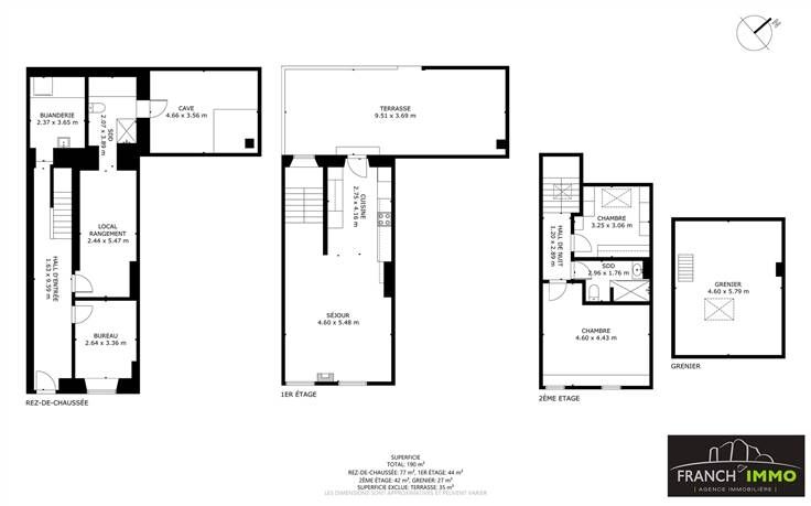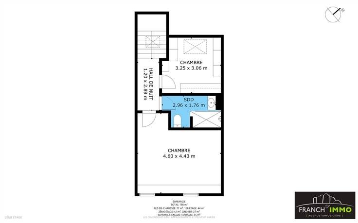 Un 2éme étage : un dressing, une salle de douche, une chambre