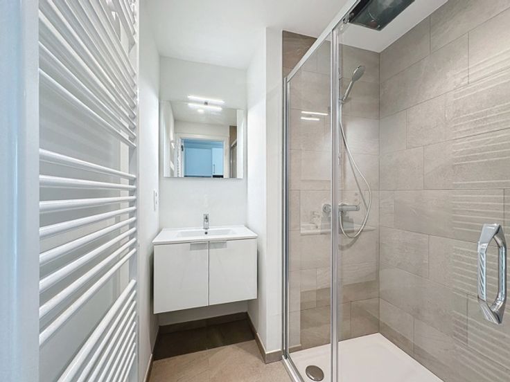 Dichtbij het Brugmannplein en het Vanderkindereplein, prachtige nieuwe studio met een totale oppervlakte van ± 47 m² in een nieuwe luxe residentie. Het bestaat uit een inkomhal, een mooie woonkamer met slaapgedeelte (± 26 m²), een volledig uitgeruste Amerikaanse keuken, een doucheruimte. Mooi terras (± 8 m²) aan de achterzijde gelegen op het zuiden. Kelder inbegrepen en een parkeerplaats extra (125 €/maand). Beveiligde deur, dubbele beglazing, individuele gasboiler en dubbele stroomventilatie. Lasten: € 100/maand (Provisie voor het onderhoud van de gemeenschappelijke ruimtes, de ketel en dubbelstroomventilatie). PEB A-. Zo snel mogelijk ontdekken bij Vaneau Lecobel!!
