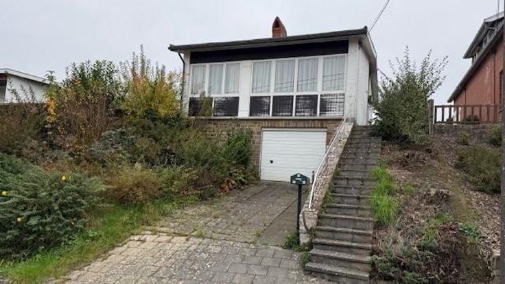 Ce bien est vendu par internet à partir du 03/12/2024 jusqu'au 11/12/2024. Villa bel-étage dans un quartier résidentiel calme et recherché avec beau potentiel de réaménagement, composée : hall d'entrée - 2 chambres - SDB (bain + évier) - WC séparé - living - cuisine équipée - cave - garage, chaufferie et pièce de stockage - jardin avec abri de jardin // châssis PVC double vitrage (sauf porte d'entrée en bois) - volets - CC mazout (cuve de 2.500 L)