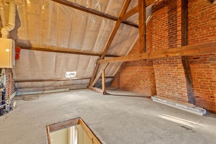 Via een valtrap gaan we naar de grote, goed geïsoleerde zolder. Er is hier een zee aan ruimte. Mits het steken van een vaste trap kan hier nog een heel grote kamer gemaakt worden.