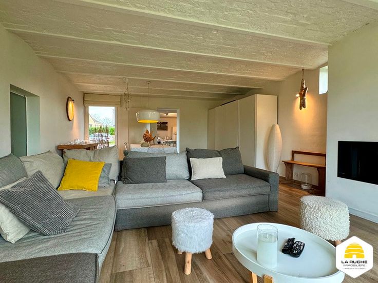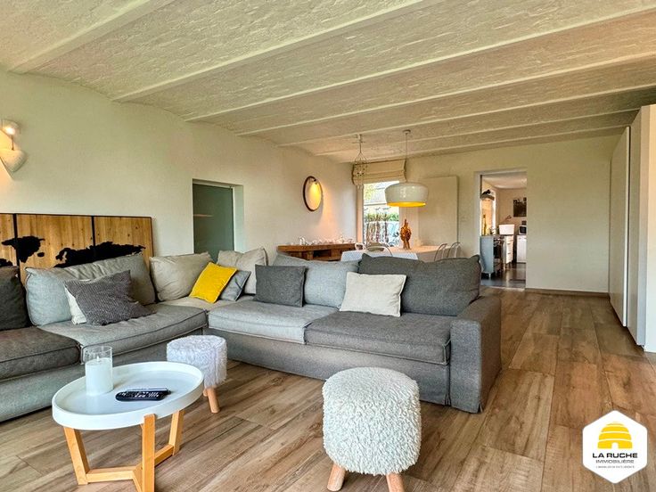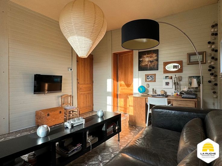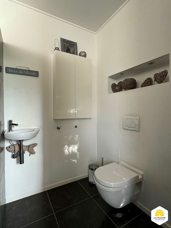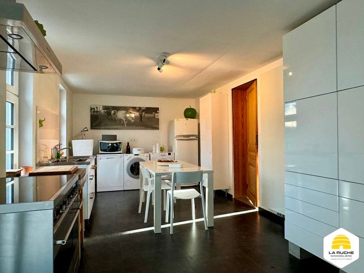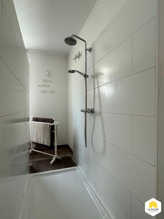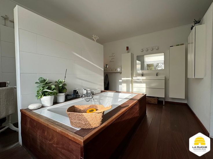 Au rez: cuisine équipée indépendante de 20m² (cuisinière induction, double fours, lave-vaisselle, hotte, doubles éviers et frigo), vaste séjour lumineux de 37m² sur carrelage avec K7 au bois et accès à la terrasse et au jardin, bureau de 17m² ou chambre, hall de 4m², grande SDB de 22m² avec baignoire, douche italienne, vasque et coin séparé pour WC et lavabo, garage 2V de 30m² avec porte manuelle, atelier de 33m² accessible via le garage.