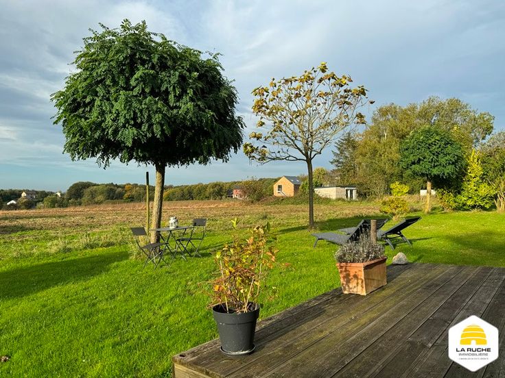 Extérieurs : grand jardin bien exposé (SUD-OUEST) et non clôturé, petite terrasse en bois, parking 3 voitures en devanture.
