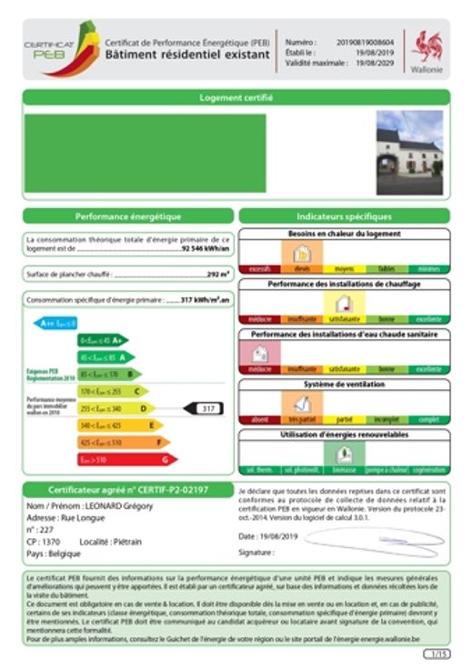 Idéalement située au cœur du village de CIPLET, spacieuse maison de 292 m² . Cette maison située dans une ancienne ferme en carré comprend 6 chambres et est remplie de charme par notamment ses espaces, ses planchers, ses poutres, … Elle comprend au rez-de-chaussée : hall d’entrée avec WC , spacieux double séjour avec vue dégagée sur le jardin, cuisine équipée . Au 1 er étage 3 chambres (dont une très spacieuse avec mezzanine) , salle de bain, salle de douche . A l’entre sol : 2 chambres supplémentaires ( dont une petite). Et au second étage très spacieuse chambre parentale . Chauffage avec poêle à pellets au rez-de-chaussée et chauffage électrique à l’étage . Spacieux jardin et emplacements de parking disponibles + terrain en zone d'habitat de 798 m² ( + /- 18m à rue). Maison partiellement meublée . RC : 454 euros Renseignements donnés à titre informatif et non contractuel.