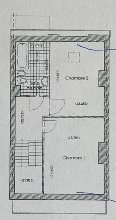 1er : salon, cuisine/asalle à manger, 1 chambre, grande sdb avec baignoire et douche, wc séparé.