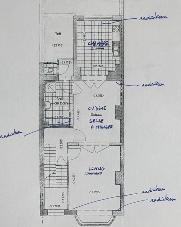 Très bon état général et double vitrage partout. Les renseignements urbanistiques avec références RU2024-539 contiennent des remarques concernant des infractions urbanistiques non encore constatées par un PV et pour lesquelles il y aura nécessité de régulariser la situation. Celles-ci concernent le jardin d’hiver au rez-de-chaussée, le logement du 2ème étage étendu aux combles, la terrasse du 2ème étage, les châssis du 2ème et 3ème étages ainsi que la porte en façade