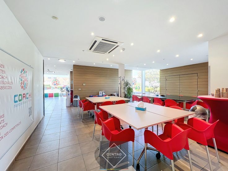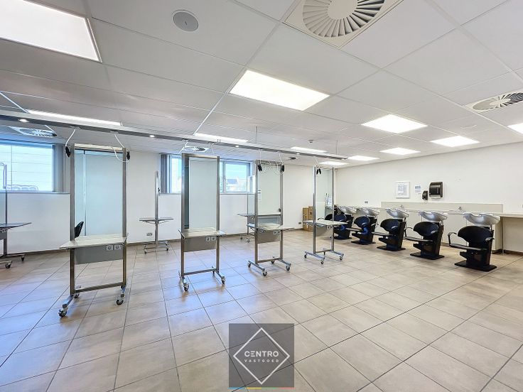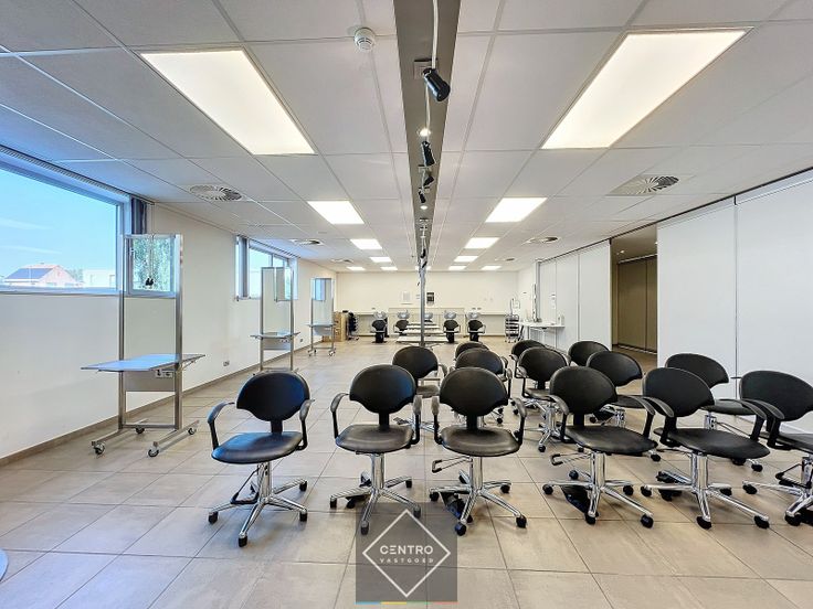 Inkomhal met receptie/balie -en wachtzaal (met plaats voor lift) - refter met kitchenette en bijkeuken – sanitair (3x heren/ 3x dames) - vestiaire –