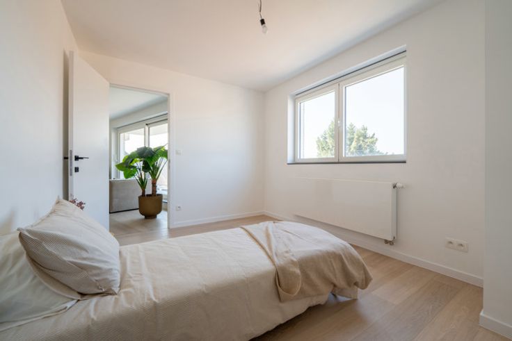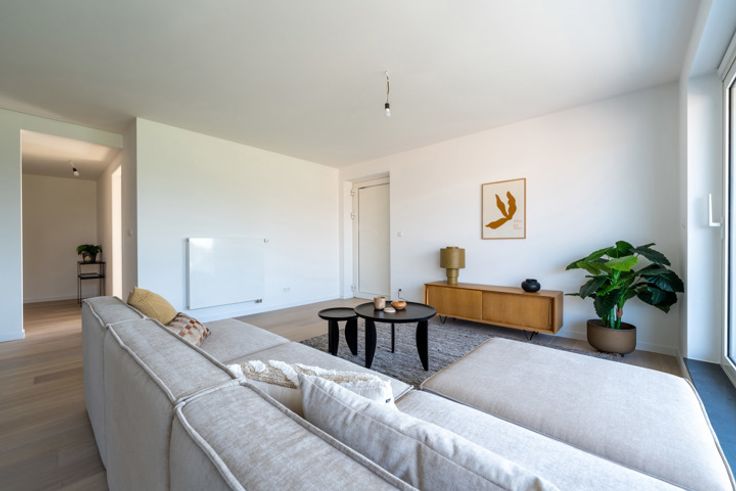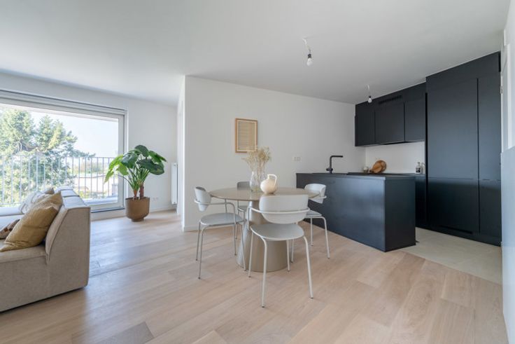 OPPORTUNITEIT! Leemans Immobiliën biedt u dit nieuwbouwappartement aan, gelegen op een uitstekende locatie in de gemeente Asse. Door zijn centrale ligging is het woonproject vlot bereikbaar, zowel met de wagen als met het openbaar vervoer. Op enkele meters van de woning bevindt zich tevens een bushalte met een directe verbinding naar het treinstation van Asse. Bovendien kunnen bewoners sinds kort gebruik maken van de nieuwe fietssnelweg met rechtstreekse aansluiting naar Brussel. Het nieuwbouwproject, bestaande uit vier appartementen, biedt op de gelijkvloers een afgesloten gemeenschappelijke fietsenstalling, evenals individuele parkeerplaatsen en privatieve bergingen. Elk appartement is voorzien van zijn eigen condensatieketel + fotovoltaïsche zonnepanelen en beantwoordt aan alle nieuwe energiebehoeftes (EPC A, dual-flow ventilatiesysteem). De appartementen werden allen uitgerust met hoogwaardige afwerkingen zoals aluminium raamkozijnen van Reynaers, semi-massief licht eiken parket, volledig uitgeruste keuken met Siemens apparatuur. Alle appartementen beschikken tevens over gunstig gelegen terrassen die een ononderbroken uitzicht bieden over de omgeving. U beschikt over de mogelijkheid om een autostaanplaats of berging bij aan te kopen. EPB in opmaak. Prijzen zijn excl. BTW en kosten. Aarzel niet ons te contacteren voor verdere inlichtingen of voor het inplannen van een bezoek! Maak je afspraak vandaag nog via 02/306.90.00 of mail naar immo@kantoorleemans.be.