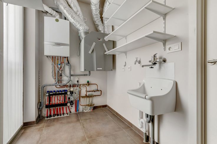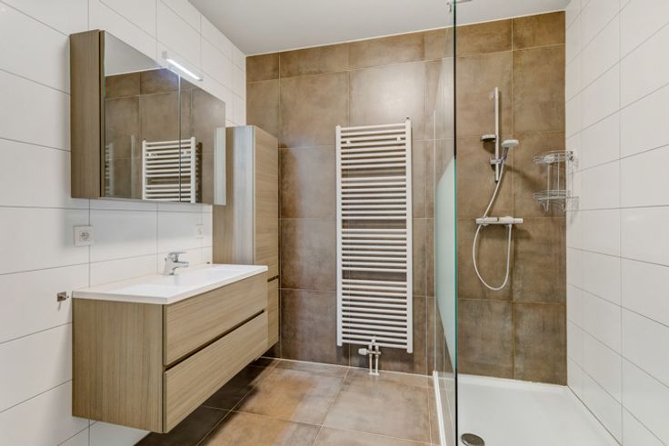 Verder vinden we een ruime berging, een badkamer met douche en een wastafel en een slaapkamer met ingemaakte kasten.