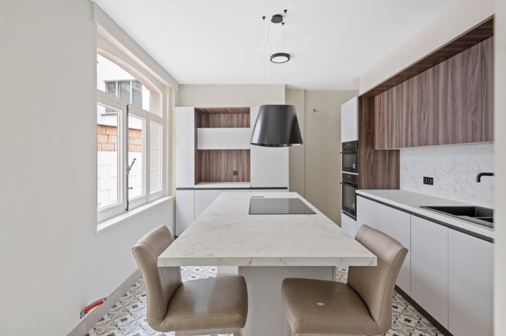 Centraal gelegen en volledig gerenoveerde neoclassicistische herenwoning op 457m² (bouwjaar 1903 en volledig gerenoveerd van A tot Z in 2024) bestaande uit : Authentieke inkomhall met molluren en hoge plafonds, woonkamer op parket met marmer schouw, molluren en hoge plafonds, inkom achteraan, luxueus ingerichte keuken, bijkeuken/wasplaats met apart sanitair (inloopdouche, hangtoilet en lavabomeubel), tussenverdieping : SLK 1 op parket met ingemaakte kasten, 1steV : SLK 2 op parket, apart toilet, SLK 3 of wasplaats op parket, modern ingerichte badkamer, 2deV : SLK 4 op parket. Trap volledig nieuw bekleed. Ondergronds : Volledig onderkelderd en afgewerkt en verdeeld in 3 compartimenten. Achterliggend annex gebouw/atelier op nieuwe chape met ruime zolder en diverse mogelijkheden (atelier, bureau, hobbyruimte, ...). Aangelegde tuin met zij-uitweg naar de straat. Uniek eigendom, volledig professioneel gerenoveerd met behoud van het authentiek neoclassicistisch karakter : Asbestvrij, volledig vernieuwde en met 16cm geïsoleerde daken, muren deels geïsoleerd, nieuw gescheiden riolering, vernieuwde nutsleidingen (elektriciteit, sanitair, ...), prebekabeling zonnepanelen en airco, gevels gereinigd en nieuw opgevoegd, ramen vernieuwd, tuin heraangelegd, nieuwe vloeren en parket, volledig geschilderd, ..., . Energielabel C, doch na installatie CV en AIRCO label A mogelijk. Afwerking CV op aardgas inbegrepen in de prijs. Parkeerplaats voorzien links aanpalend (zij...