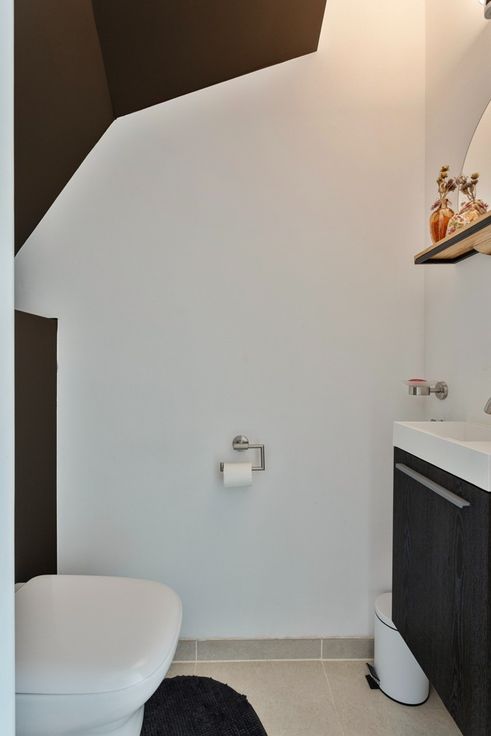 V1: nachthal met trap naar V2, badkamer met douche, apart toilet, masterbedroom en slaapkamer