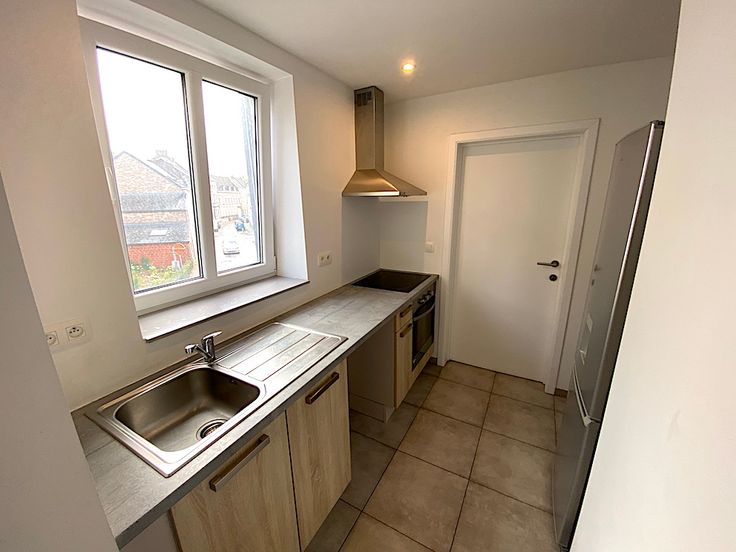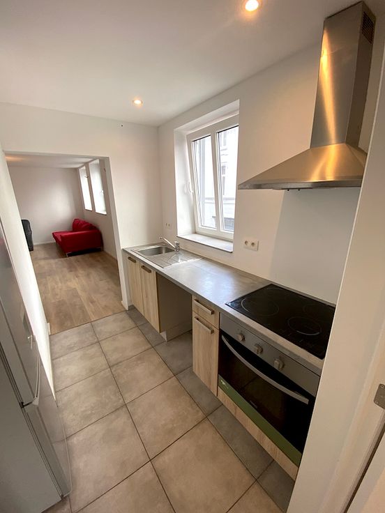 A deux pas de la Grand-place (+/-250m) et 15’ (+/-1km) de la gare, ce bel appartement de coin situé au premier étage (sans ascenseur) d’un petit immeuble du centre-ville convient idéalement pour une personne seule et se compose d’un hall avec petit espace de rangement, un lumineux séjour de +/-21m2, une cuisine équipée (four/hotte/vitrocéramique/combiné frigo-surgélateur/emplacement LV/ emplacement LL+SL/évier/meubles), une chambre de +/-10m2, une salle de douche avec meuble avec vasque et douche XXL (+/-90cm x 140cm) et un wc séparé. L’immeuble comporte un local vélo.
