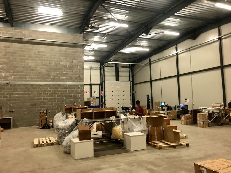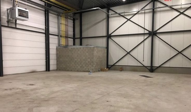 Specificaties: staalstructuur met sandwichpanelen, 8m vrije hoogte, automatische sectionaal poorten, laadkades, polybetonvloer, tl-armaturen, geïsoleerd dak, aerothermen op gas, rookluiken, hoogspanningscabine